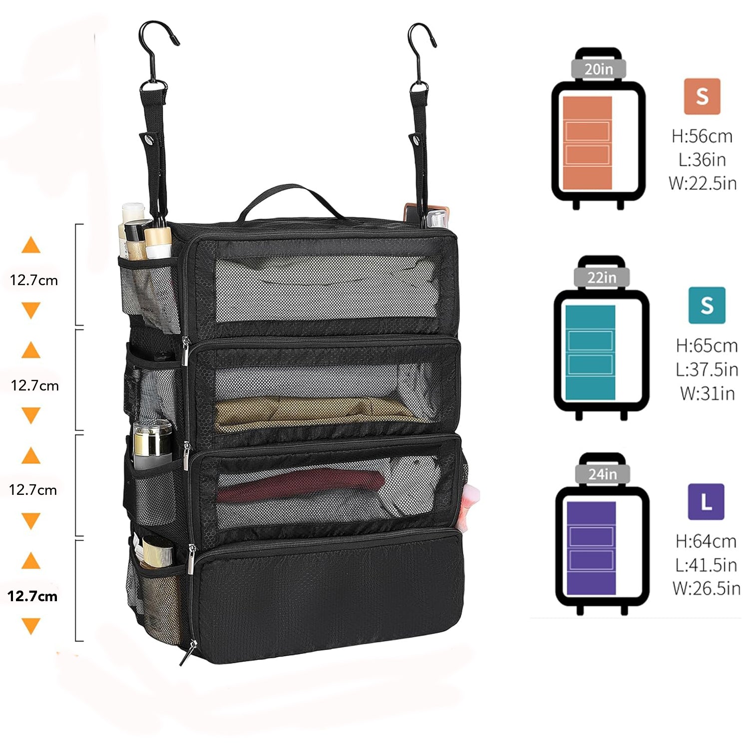 Maximize your travel convenience with our collapsible hanging travel luggage shelves, a must-have for any organized traveler. This innovative suitcase organizer is designed to streamline your packing process, making it easier to manage and locate your belongings on the go.