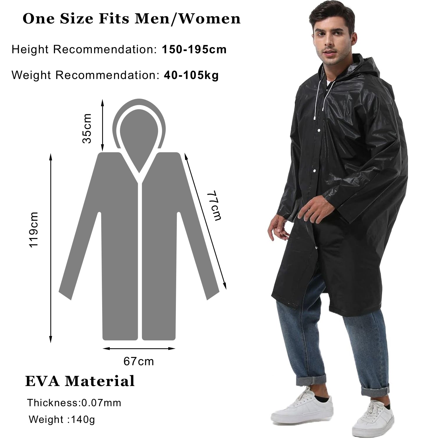 Crafted from high-quality EVA, our raincoats are tear-resistant and durable, ensuring they withstand the elements while remaining lightweight and comfortable to wear.