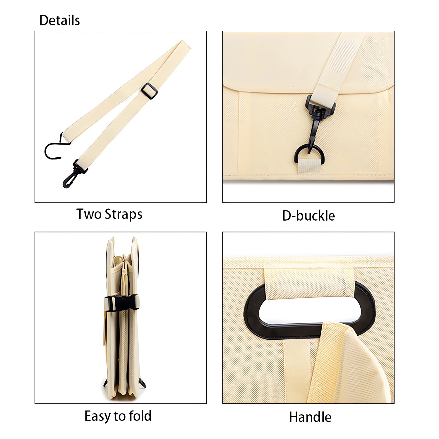 This versatile organizer can be adjusted to fit your needs. It can be partially collapsed to serve as a seat organizer, making it ideal for business trips or solo travel. When not in use, it can be fully collapsed and secured with a buckle, making it easy to store without taking up much space.