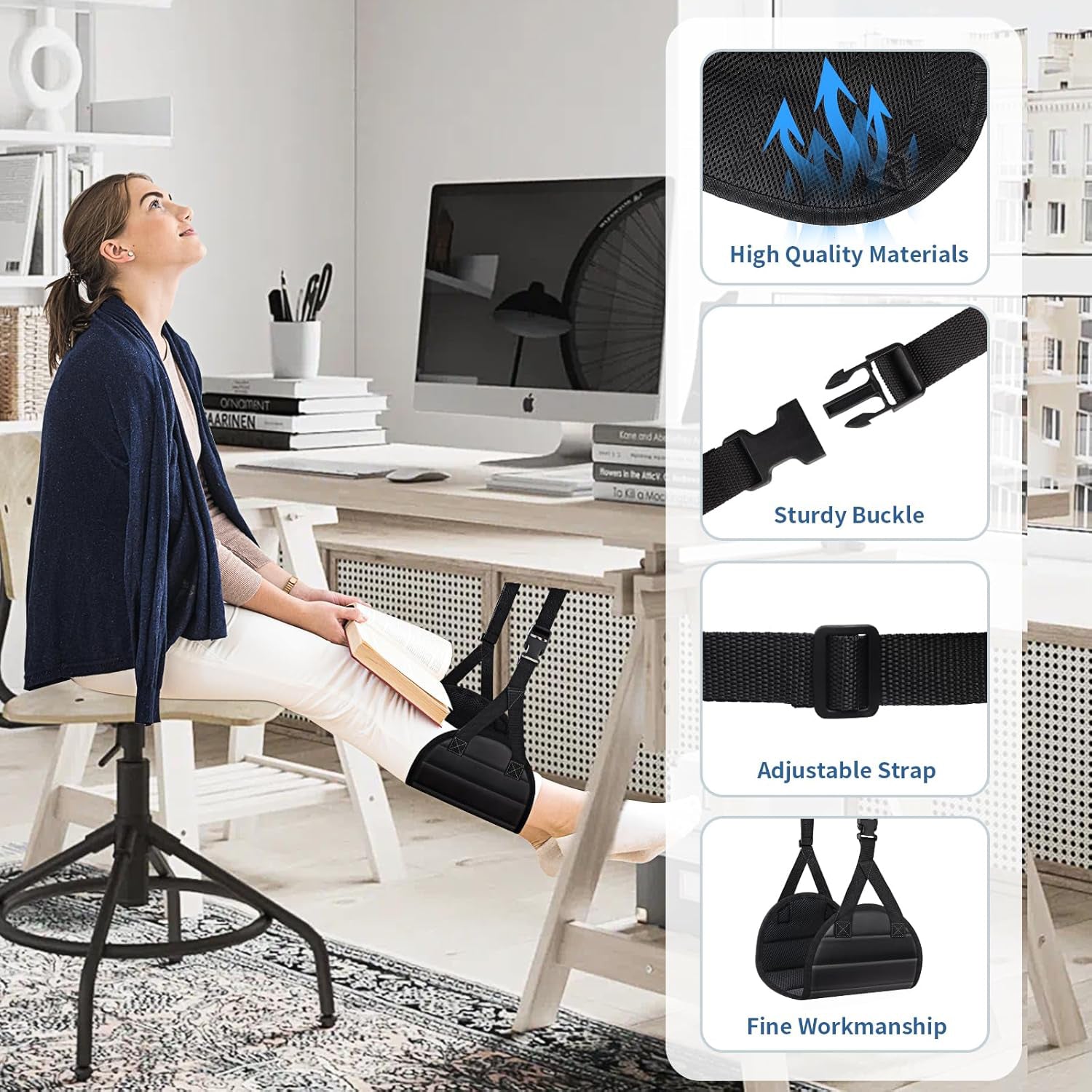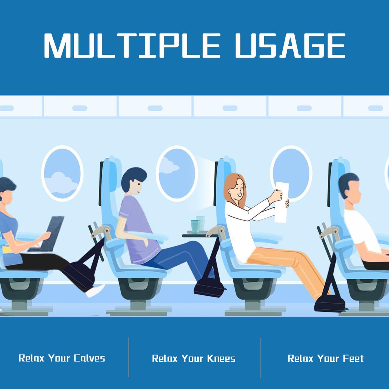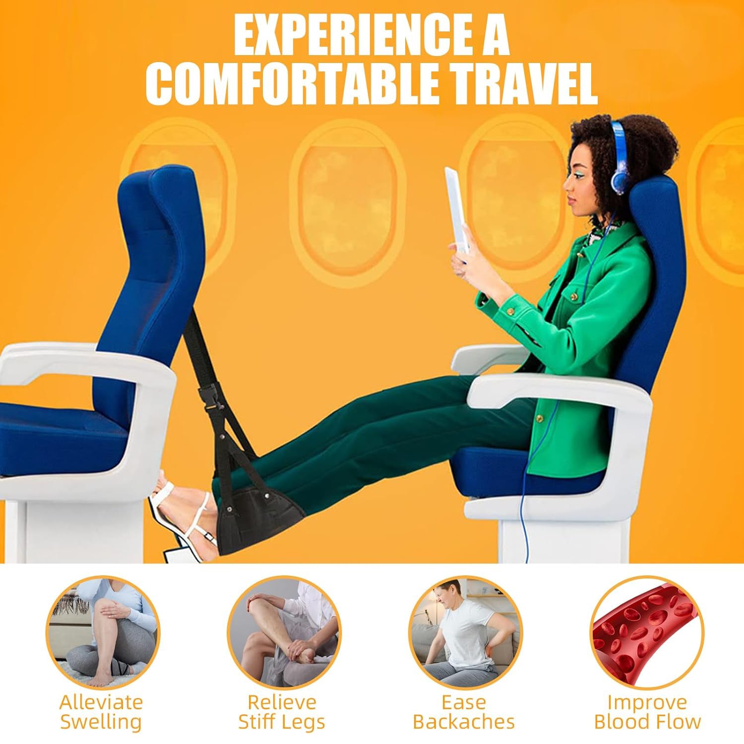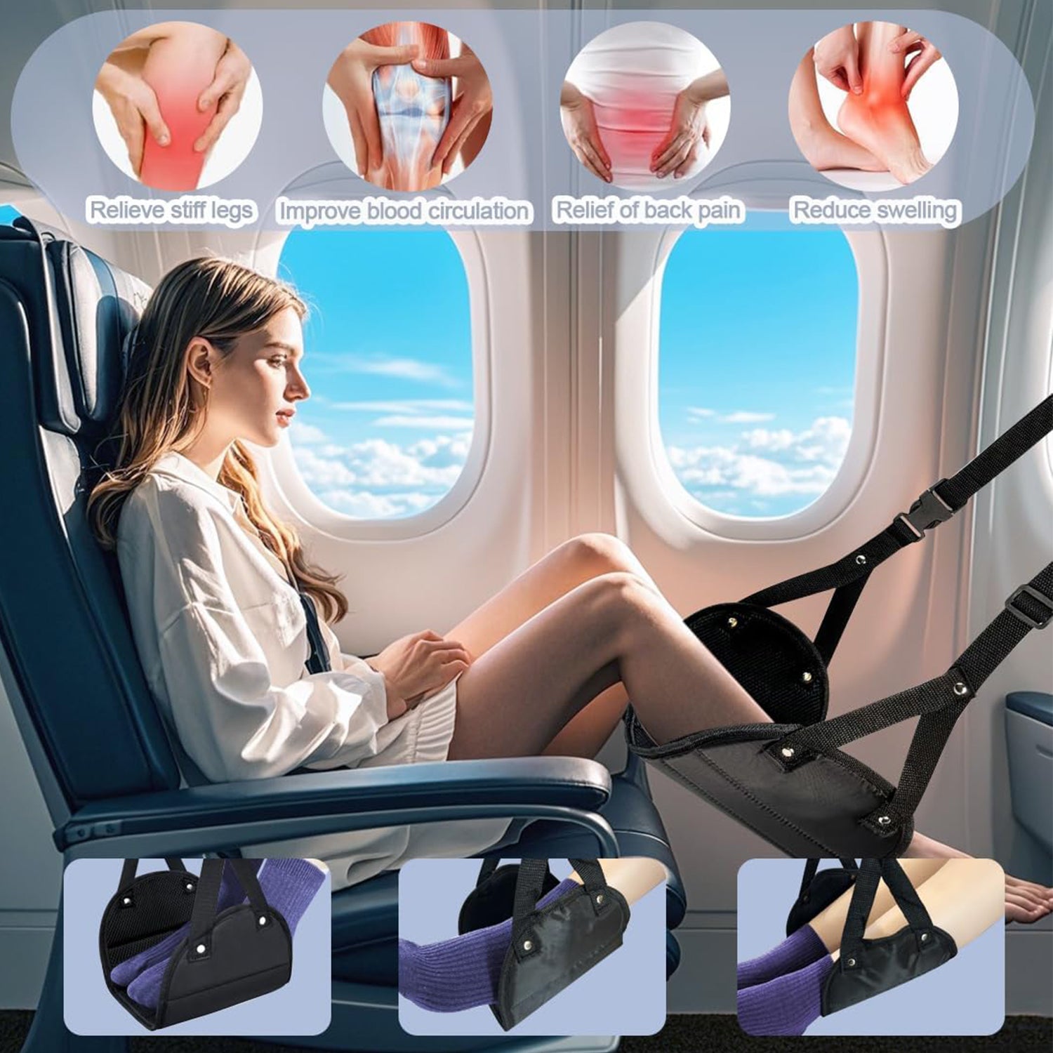 Say goodbye to restless legs! The foot hammock is engineered to promote better circulation and prevent leg strain, making it ideal for travelers who experience difficulty reaching the floor or endure long hours in seated positions. Enjoy a stress-free, comfortable trip every time.