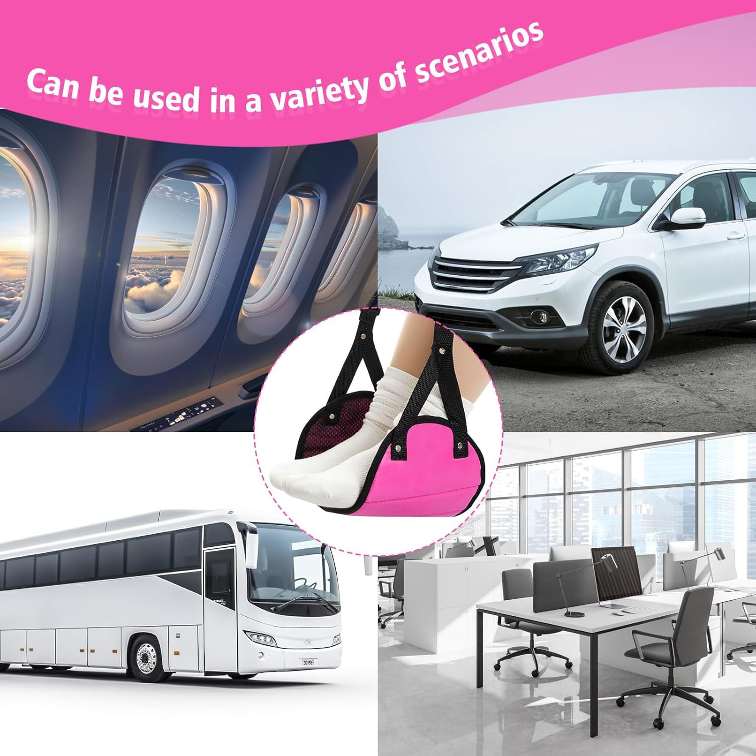You’ll receive foot hammocks with lightweight storage bags, ideal for long-distance travel. Whether by plane, car, bus, or train, elevate your feet for a more comfortable, relaxed sitting position—no more awkward leg postures!