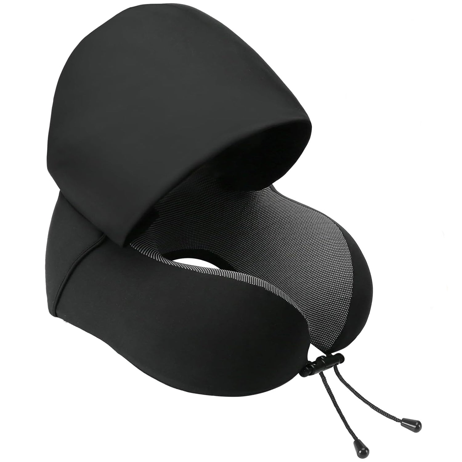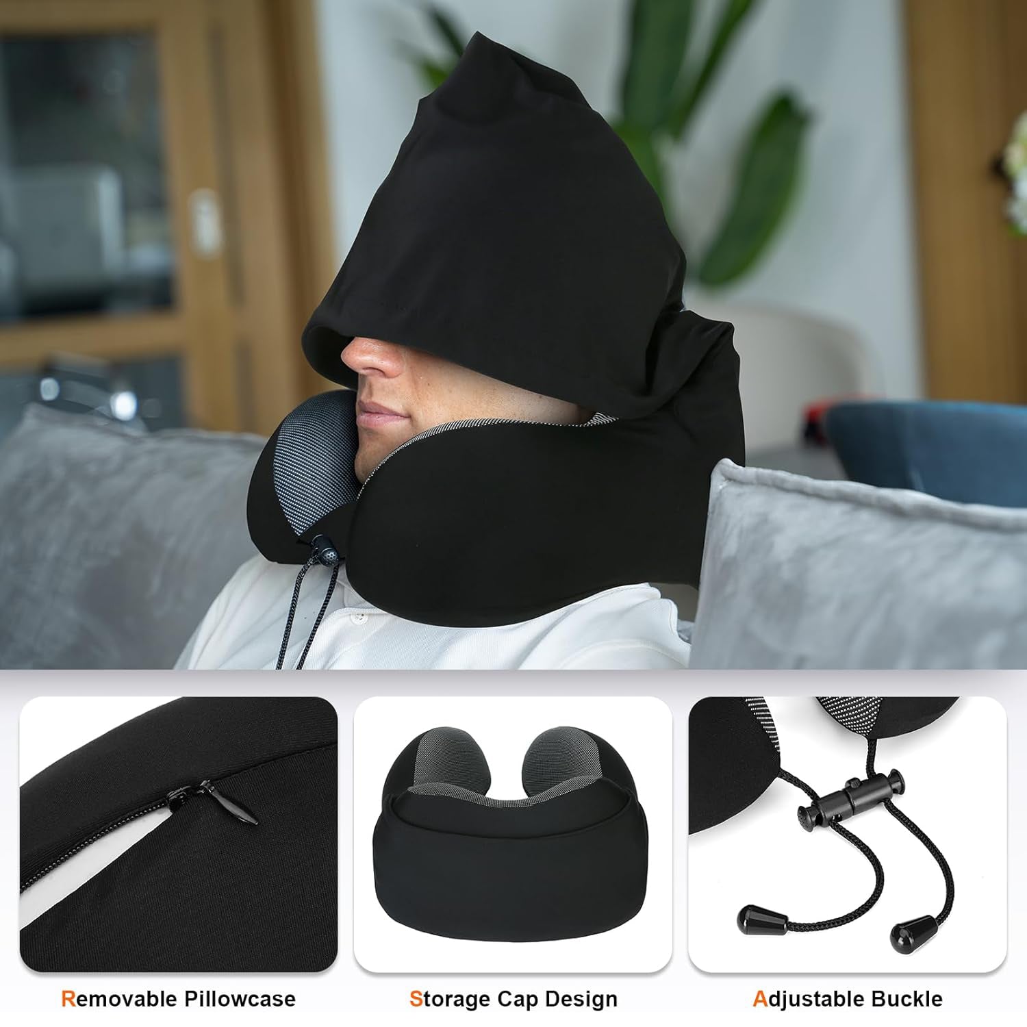 Portable Memory Foam Travel Pillow with Hood, Dark Flights Sleeping
