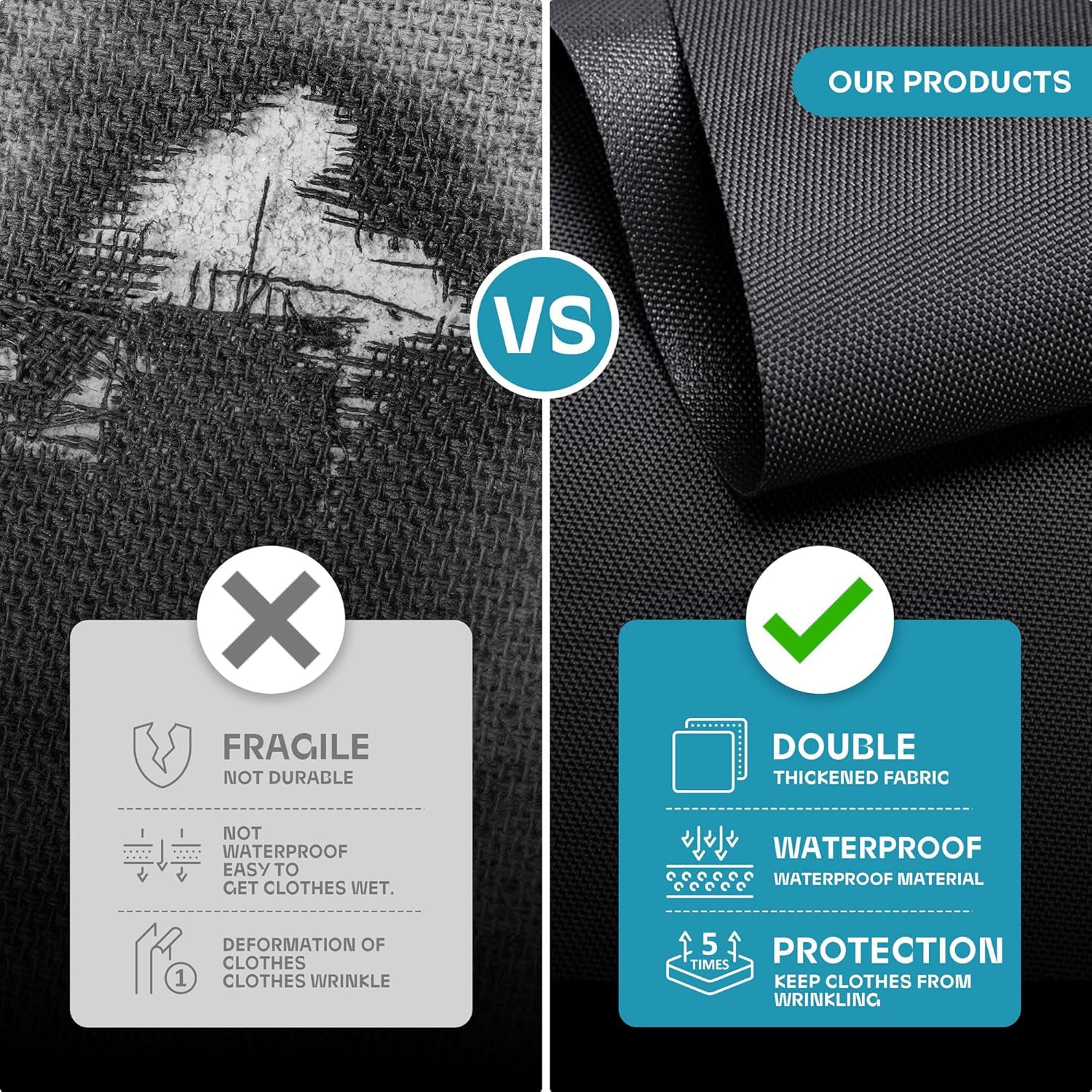 Made from eco-friendly, non-woven fabric, our garment bag is breathable, tear-resistant, and free from harmful acids, ensuring your clothes stay fresh and safe from dust and odors. Unlike nylon or canvas, this fabric provides long-lasting durability for repeated use.
